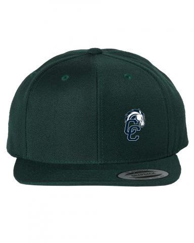 Cap off your school spirit with our Classic Flat Bill Snapback! Rocking your high school's logo, it's a shout-out to your team. Features a flat bill and green undervisor, except the two tone camos have a black undervisor.